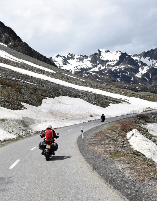 In Zwitserland zijn een aantal bergpassen pas begin juni open voor het verkeer. In juni staan alle alpenweides in bloei, is het rustig op de weg en rijd je op de hoger gelegen bergpassen nog langs sneeuwwallen. Vanaf juli komt het toerisme meer op gang. In de zomer zijn er relatief veel motorrijders, maar er is geen sprake van massatoerisme. In september is het rustig met vaak nog prachtig nazomerweer, maar kan er incidenteel alweer sneeuw vallen. Het zicht op de besneeuwde bergtoppen is dan magnifiek en het mogelijke ongemak van korte duur. De sneeuw op de weg smelt al snel weer weg en er zijn altijd routes die sneeuwvrij zijn.